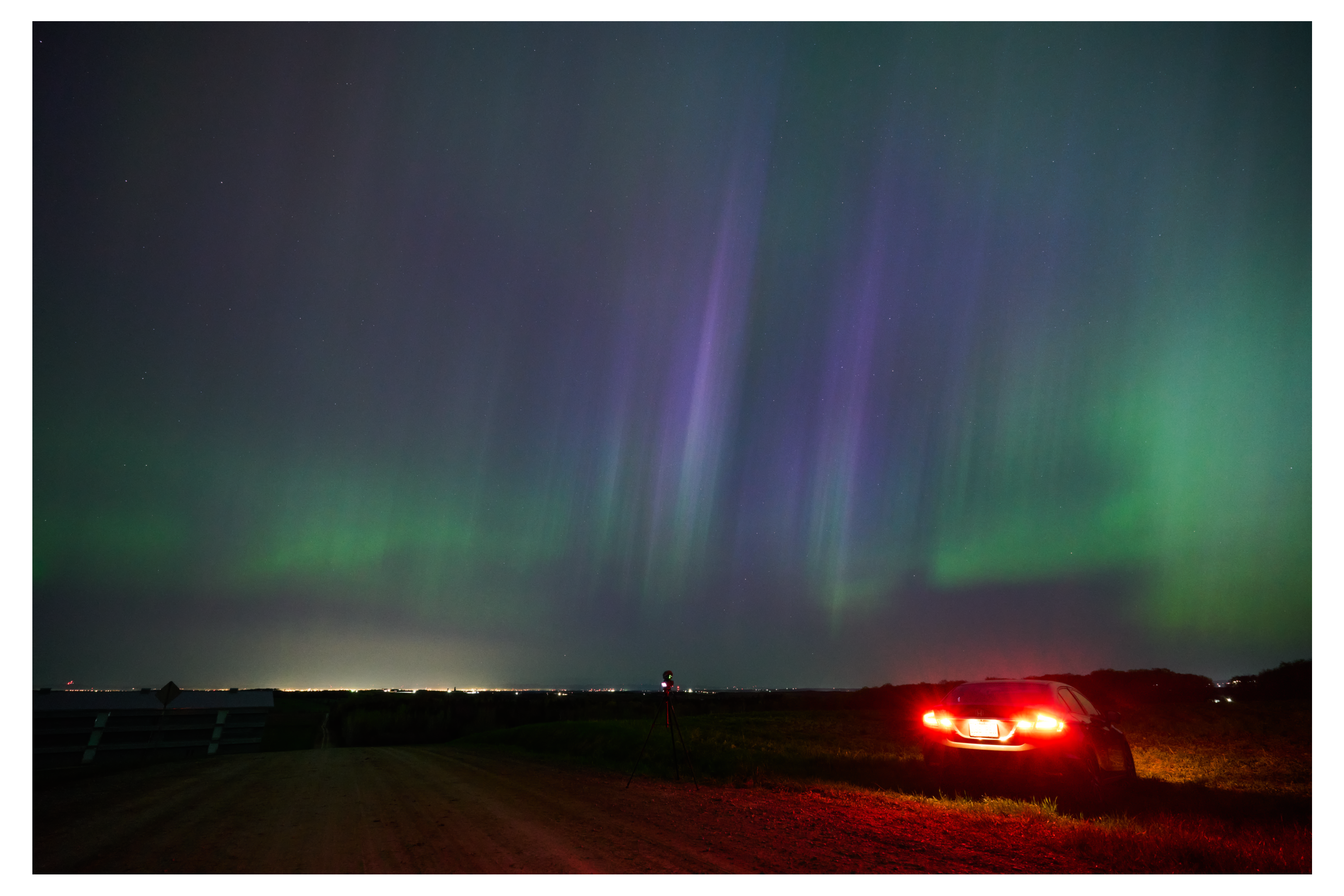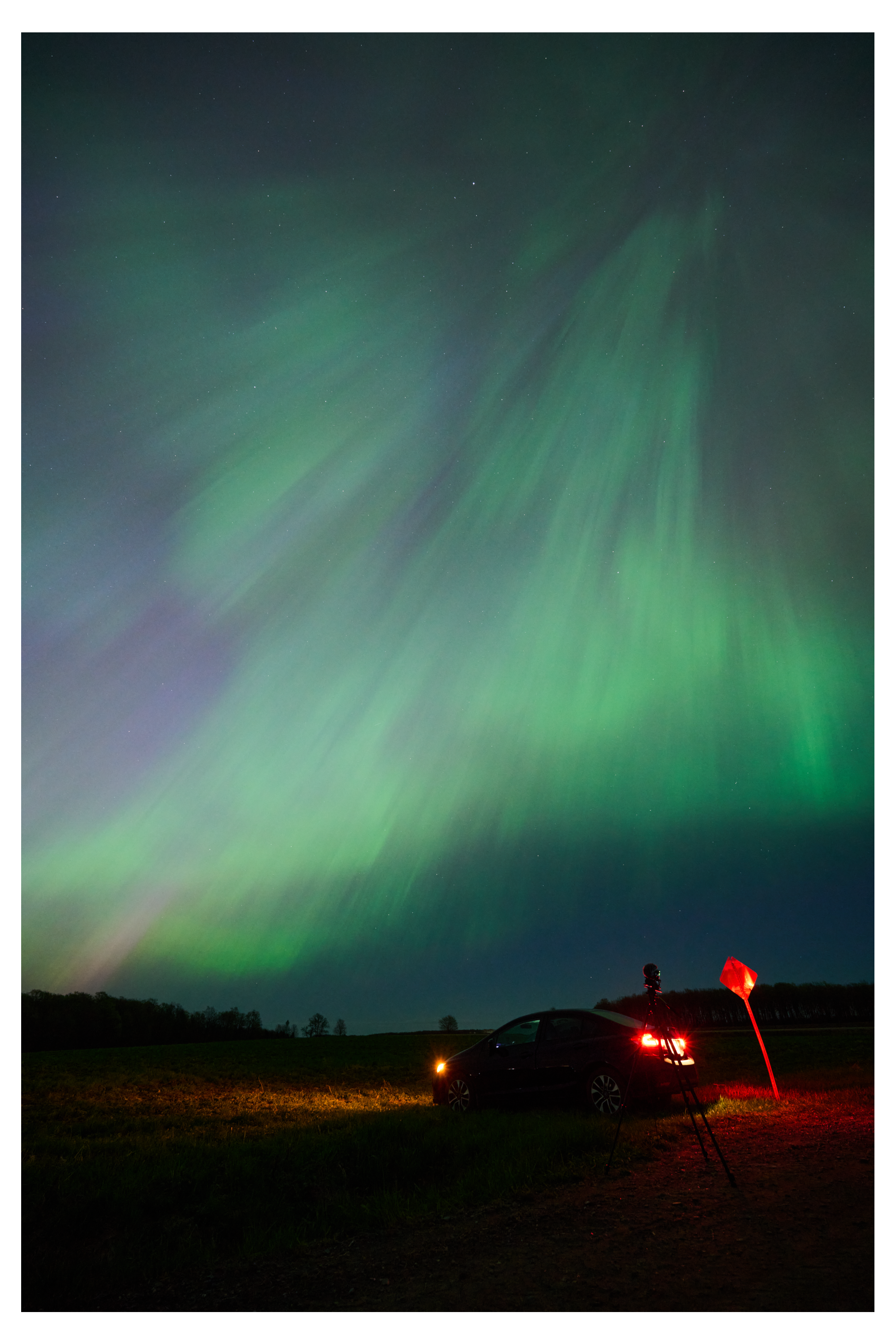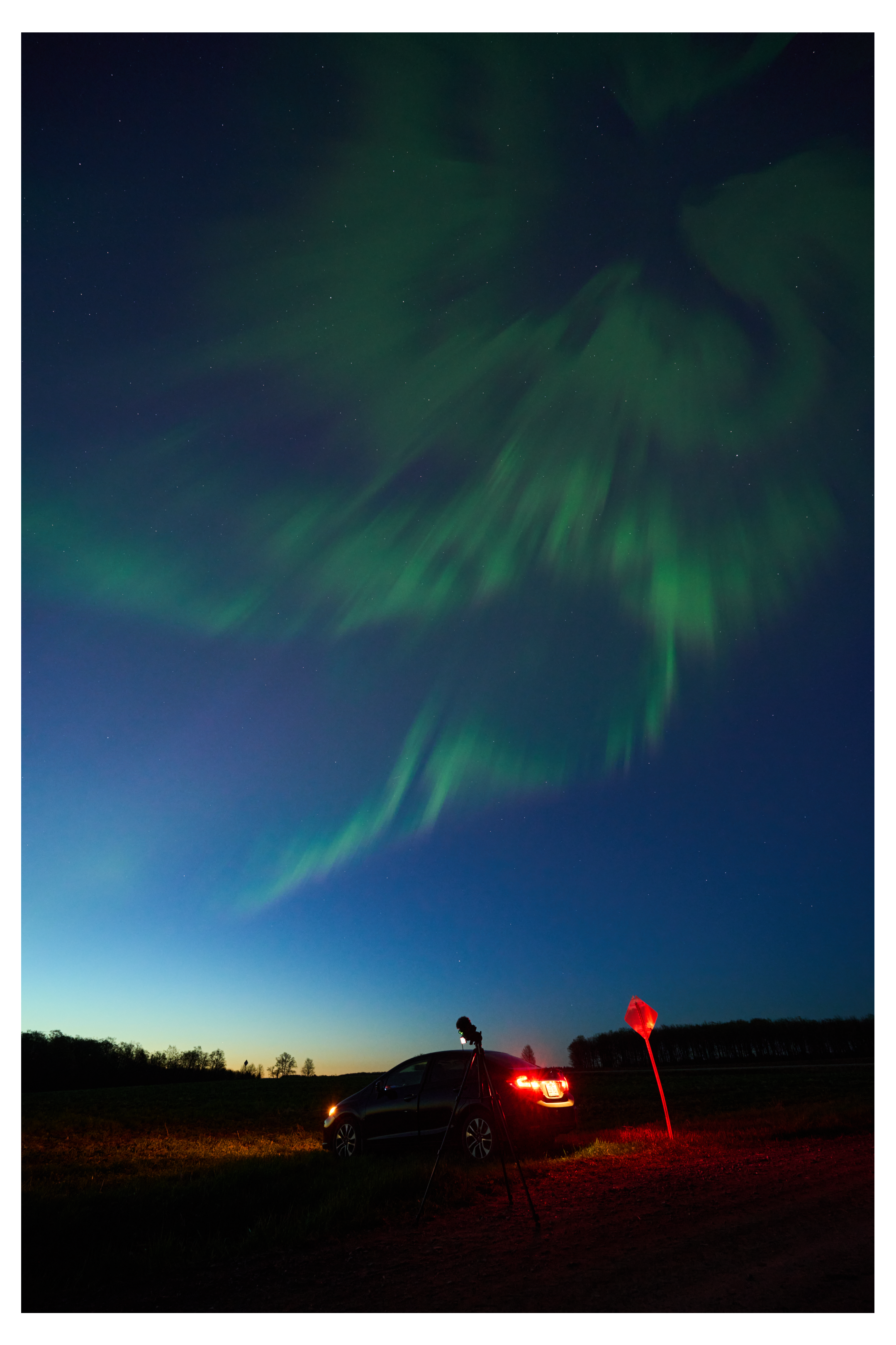 ...J'me souviens pas non plus avoir déjà vu une aurore commencer au dessus de l'horizon sud au lieu de l'horizon nord. Dans les deux cas, ça prend bien une tempête magnétique de catégorie 5 pour faire ça!