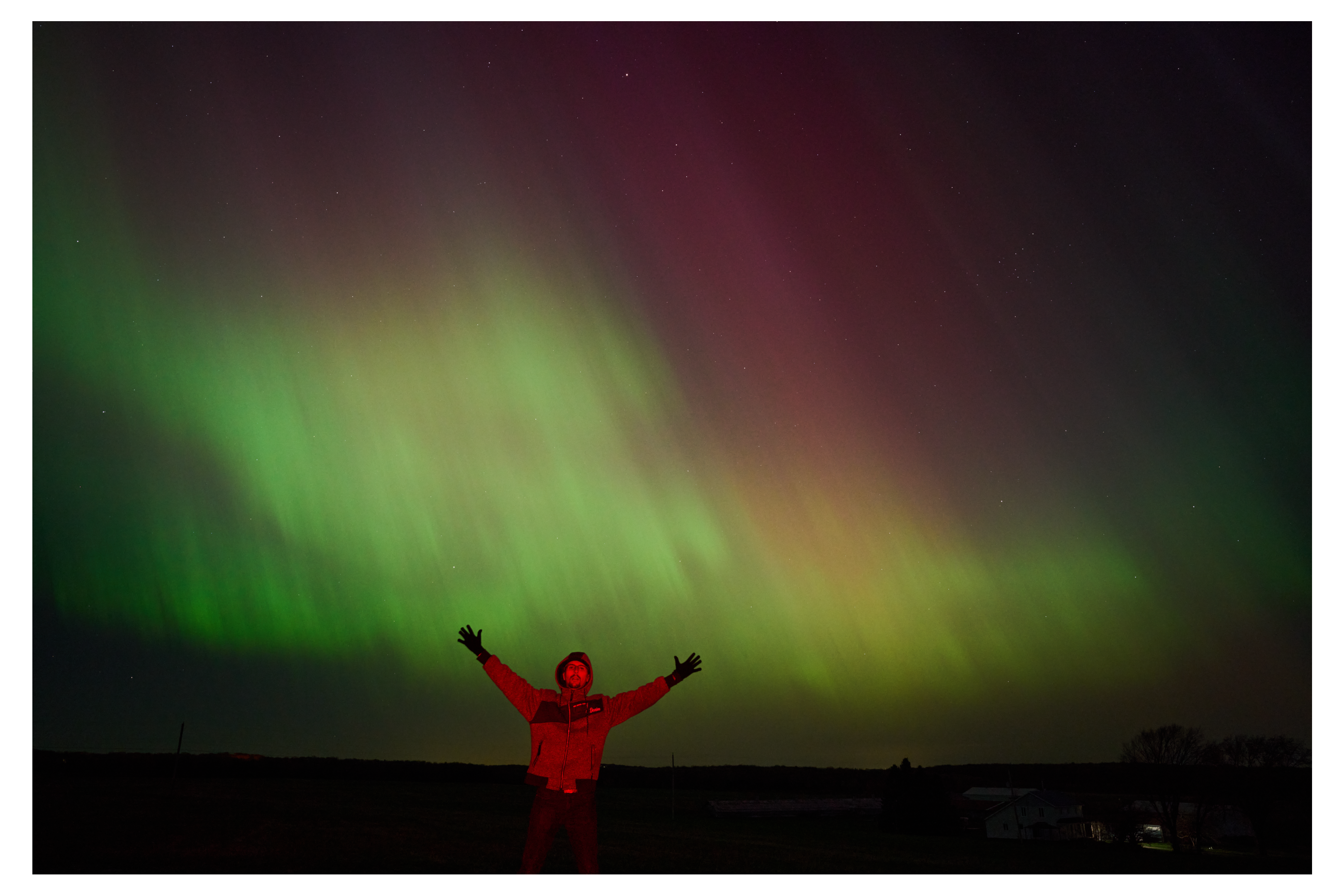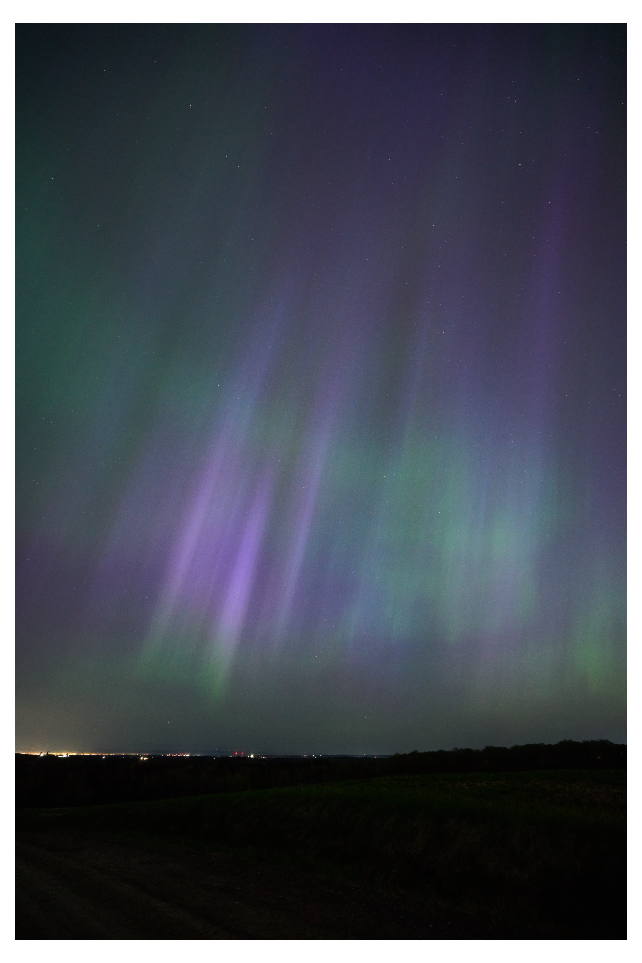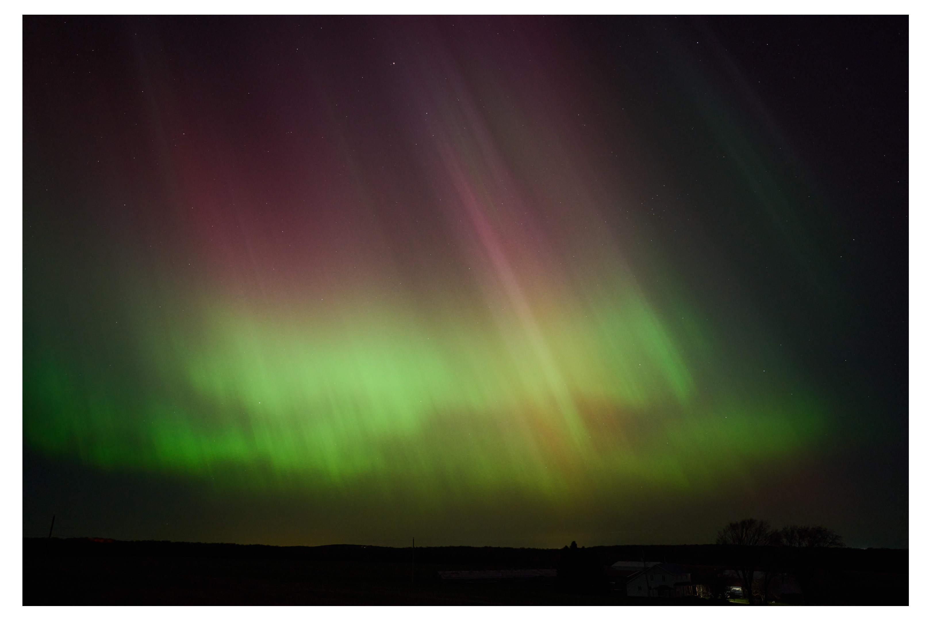 ...J'me souviens pas non plus avoir déjà vu une aurore commencer au dessus de l'horizon sud au lieu de l'horizon nord. Dans les deux cas, ça prend bien une tempête magnétique de catégorie 5 pour faire ça!